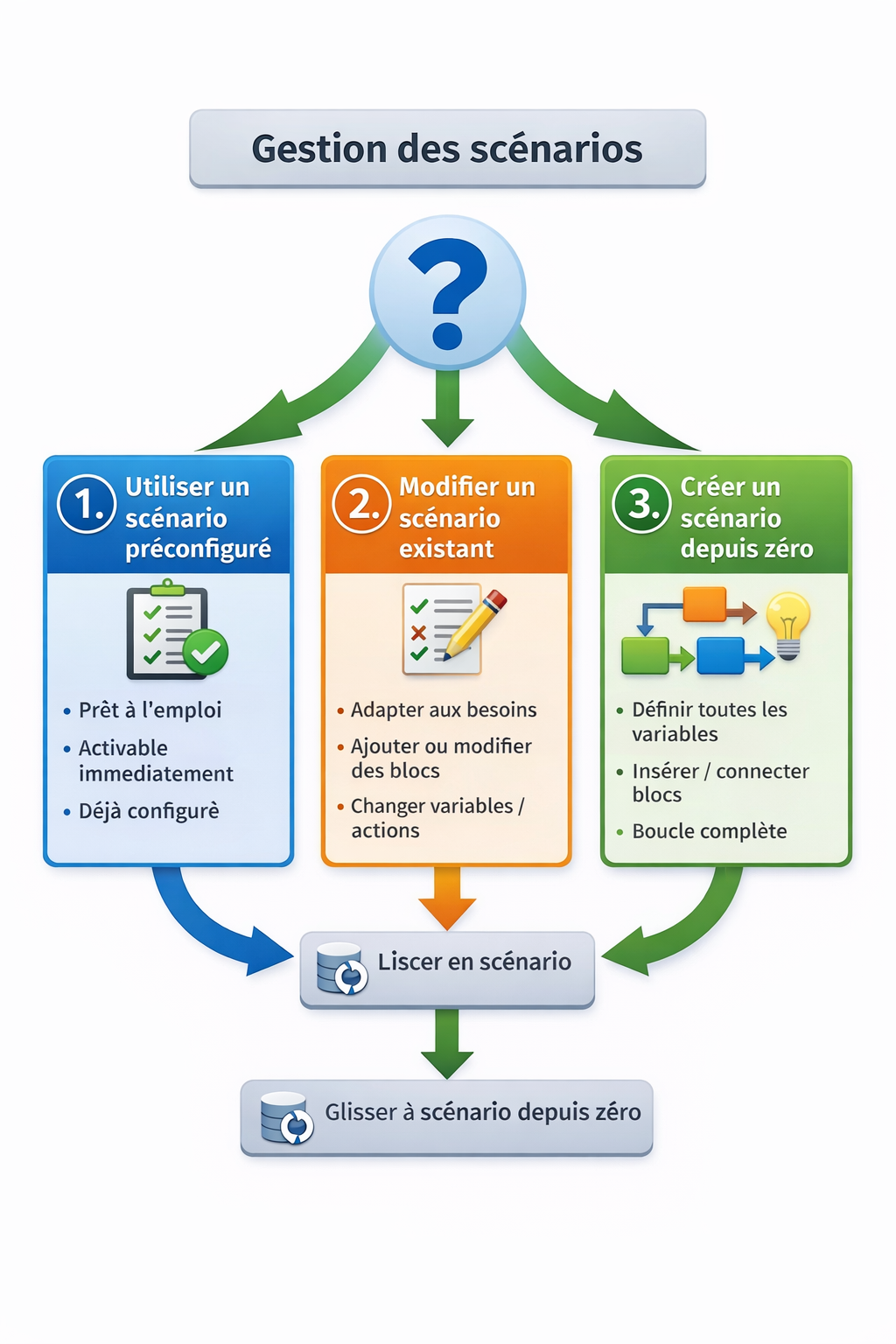 L’utilisateur dispose de trois options pour créer ou utiliser un scénario :