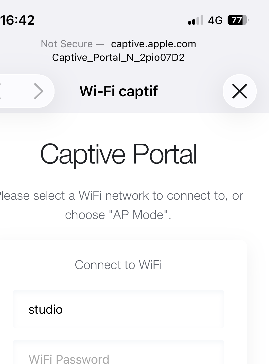 Sélectionner le SSID du réseau Wi-Fi du module ("Captive Portal" + numéro d'identification du module)