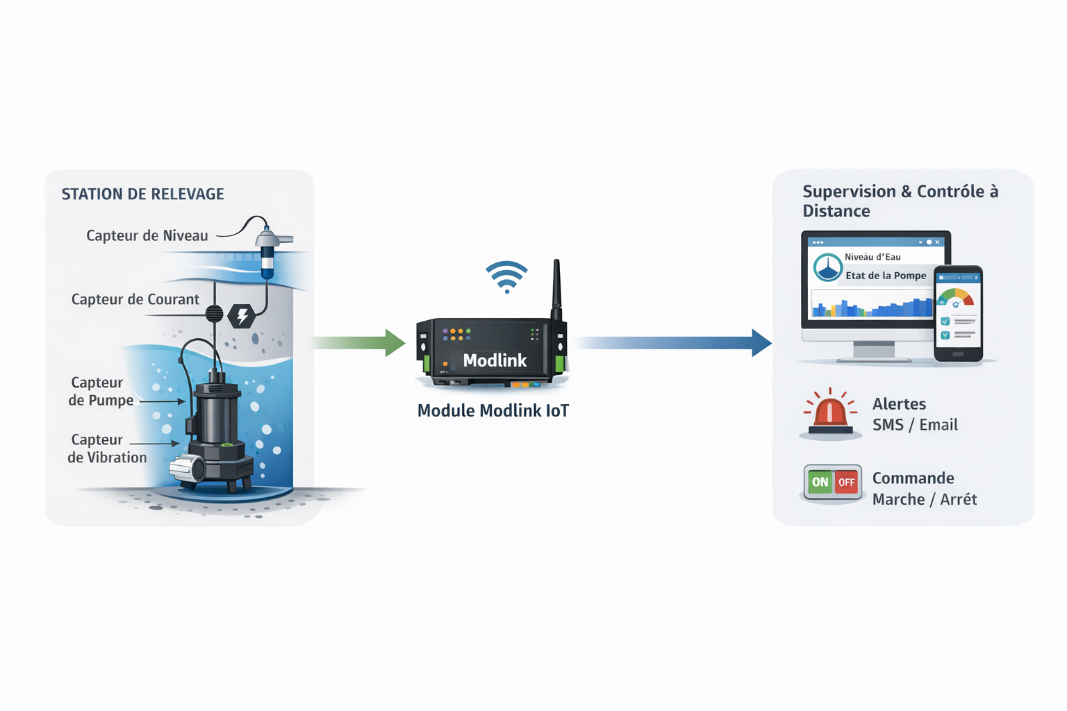 Exemple concret d'utilisation pour la surveillance d'une pompe de relevage :